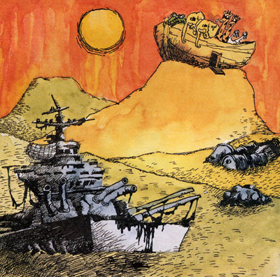 神様のウソつき。洪水が終わったら新しい世界が始まるって言ったじゃない。だからボクたちみんなこんな大きな舟まで作って備えたのに…。大洪水の後も、大気のバランスを崩した地球はますます温度をあげていった。そして、今はいない人間の悪業の残骸がどんどん現れてくる。もう世界中のどこにも水はない。でもここから始めなきゃ。生きていかなきゃ。ボクたちの創世記なんだから。