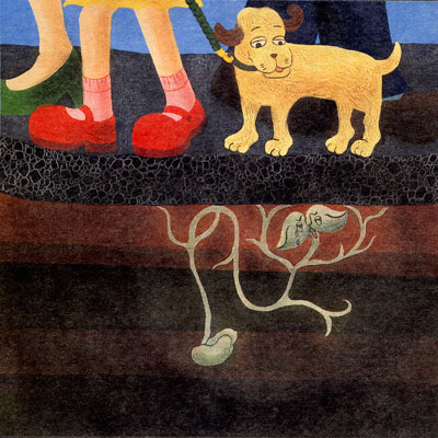 「いやぁ、荒れ放題だった空き地もきれいに整備されて、今はこのとおりの駐車場。おかげでご主人様は車が買えたし、ワシもこの年でドライブなんてものを楽しめるようになったんじゃ、うん。おかげで毎日、楽ちんじゃ。」「冗談じゃないわよ。アタシはどーなるのよ。これじゃ一生、日の目を見ないじゃないの。アタシはまだ若いのヨ。花も実もある乙女なのヨ。人生これからなんだから。もう!誰よ、こんなところにコンクリートなんてひいたのは!」