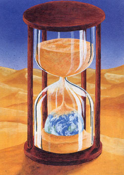 そうですね。お母さまのご還暦祝いでしたら、こちらの砂時計はいかがでしょう。この中の砂は元日本海の海底のものでございます。ご存じのように、現在の日本はユーラシア大陸と地つづきになっておりますが、お母さまぐらいのご年代の方でしたら、ご幼少の頃に海だった日本海を見られたご経験があられるかと思いますし。また、地球の模型は特殊技術により、時間がたつにつれて緑から茶色に変わります。幸いお母さまは地球がすべて砂漠になってしまうまでご存命ではないでしょうし、イミテーションでもご覧いただいたら…あ、これは失礼。