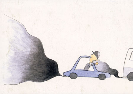 「首相、いよいよガソリン車の最終日となったわけですが、処分場の現場に来られたご感想は?」「いや、いくら名目上は政府が買い上げるとは言え、長年連れ添った愛車を処分されるんですから、マイカー派の国民の皆さんはいい気分ではないでしょう。でもこれくらいの強行手段にでなければ地球上の二酸化炭素は減りません。ほら、あの前の車に怒っている男性の車。自分の車の排気ガスは見えていないのです。あんな車が世界中にあふれてたんですから。これから地球はきれいになりますよ」「ということは首相の専用ハイヤーも、もう処分されたわけですね」「ん…ま、まあネ」