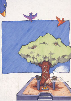 お母さん、お元気ですか? まだまだ寒い日が続いていますね。さっそくですが先週の日曜日に、頼まれていたお墓の購入手続きを済ませてきたので写真データを送ります。オプションに造花と科学線香があったのでつけておきました。リス2匹はサービスだそうです。国の融資制度を利用した場合は、身近な動物たちに住みかとして、墓木の一部を提供することが義務づけられているので助かりました。リスならかわいいし、うまくいけば他の木の種を持ってきてくれるかもしれまん。とりあえず、これで地球に残って死ぬ権利が確保できました。おばあちゃんの時代の宇宙葬に比べれば贅沢ですね。とにかく一度見にきて下さい。では、また。