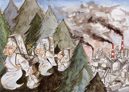 「やれやれ、だいぶ登ってきたな。ばあさん大丈夫か?」「ええ、おじいさん。おかげ様で痛む足ももうありませんしね。おじいさんこそ腰は大丈夫ですか?」「なあに、まだまだ。しかし墓に入ってまで安心しておれんとは。これというのも、先祖代々檀家であった寺が、あんな工場に土地を売り払ってしまったせいじゃ!」「しょうがないですよ、おじいさん。今や日本の人口は100人足らず。しかも半分以上は海外暮らし。私達の子孫も今どこでどうしているのやら」「嘆かわしいのぉ。何とも寂しい限りじゃなぁ」「おじいさん、私はいつまでもついて行くますから元気だしてくださいよ」「うんうん。まったくじゃ。これからも二人、手を取り合って仲良く生きていこうな」「…もう死んでますよ」