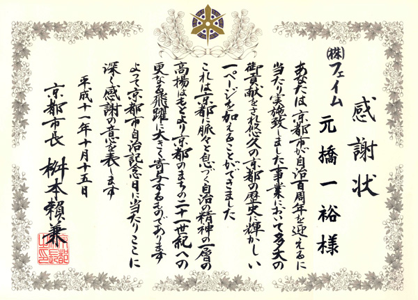 ・1996年 5月 京都市産業観光局主催、全国レジャー誌京都特集コンテスト入賞